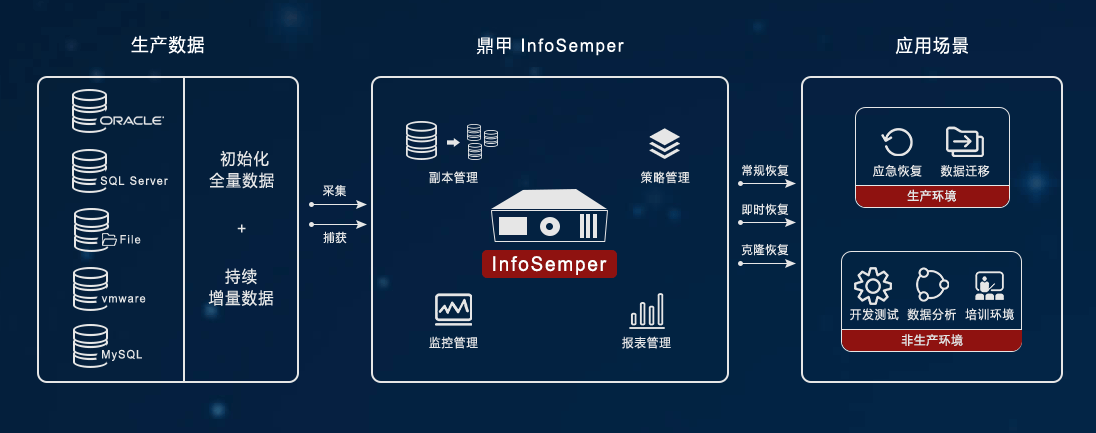 鼎甲自動(dòng)化的數(shù)據(jù)保護(hù)、數(shù)據(jù)管理工具,確保企業(yè)在IT運(yùn)維過(guò)程中,數(shù)據(jù)零丟失,系統(tǒng)高可用,業(yè)務(wù)不中斷。