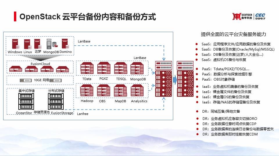 我們鼎甲的優勢主要可以分為四個部分:一是傳統備份架構演進為云平臺備份架構優化升級;二是多種云平臺和開源產品的全面兼容和功能支持;三是廣泛的應用和數據類型的全面兼容和功能支持;最后就是全面的運營級云備份的服務化和大數據支持。