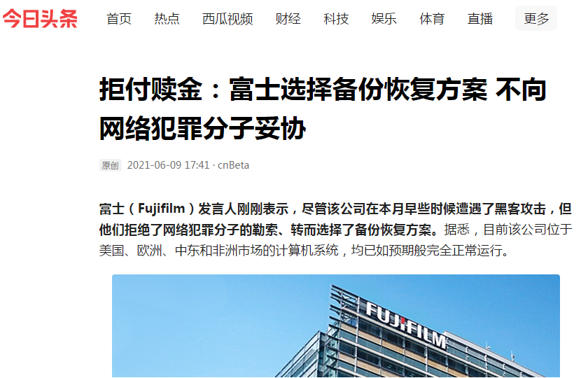 拒付贖金:富士公司對抗勒索病毒,備份恢復方案立功!