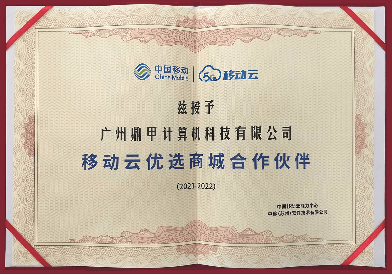 近日,鼎甲再次被移動云授予“移動云優選商城合作伙伴”證書,與移動云攜手共創優選生態。