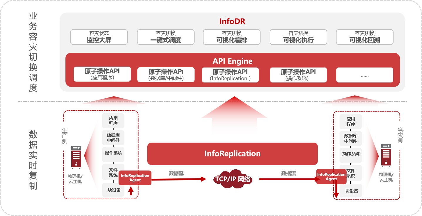 通過(guò)InfoReplication,可高效實(shí)現(xiàn)各類企業(yè)級(jí)“數(shù)據(jù)容災(zāi)”場(chǎng)景,為業(yè)務(wù)數(shù)據(jù)提供持續(xù)穩(wěn)定的容災(zāi)保護(hù),搭配InfoDR,可“升級(jí)”進(jìn)階為“準(zhǔn)雙活應(yīng)用容災(zāi)”,為業(yè)務(wù)應(yīng)用提供自動(dòng)化可視化的容災(zāi)管理。