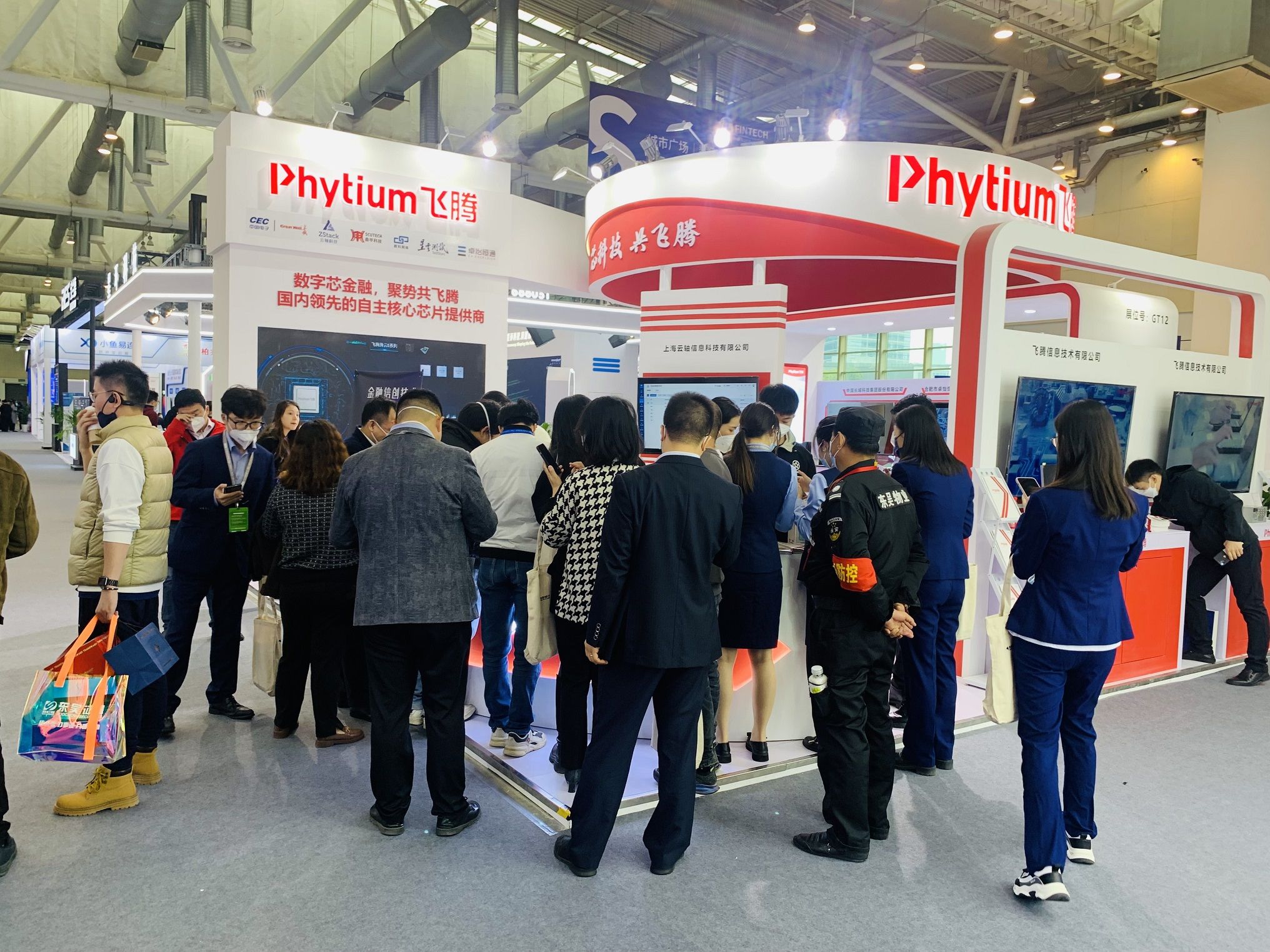 面對金融數字化轉型的新形勢、新挑戰,飛騰攜手鼎甲、中國長城、云軸科技、北京數科網維等10余家軟硬件合作伙伴,共同展示基于飛騰 CPU 的金融服務產品。