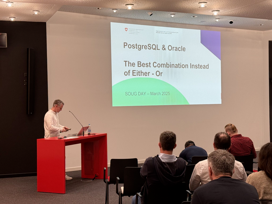 2025 年 4 月,鼎甲首席數據庫專家姚遠受邀前往瑞士首都伯爾尼,參加由瑞士 Oracle 用戶組(SOUG)與 PostgreSQL 用戶組(SwissPUG)聯合主辦的 “Database Synergy Day 2025: Swiss Oracle & PostgreSQL User Groups Unite” 技術盛會。