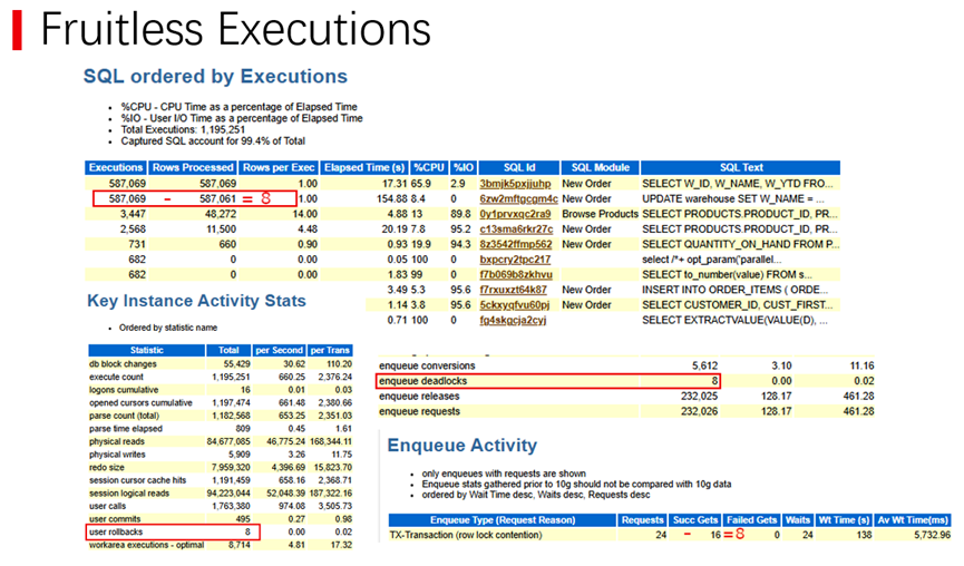在第一個案例中,AWR 報告的 “Top Events” 指出了系統存在嚴重的行鎖爭用現象,但未能具體說明問題發生的對象。此時,借助 ASH 中的原始采樣數據,姚遠成功提取出發生爭用的具體會話信息,并進一步定位到對應的?ROWID。這為開發人員提供了明確的優化方向,能夠對癥下藥,從業務邏輯與 SQL 代碼層面進行修復和調整。
