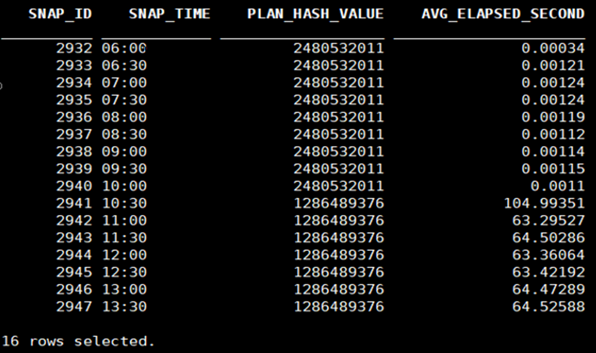 另一個典型問題來自用戶反饋:“數據庫突然變慢”。通過 AWR 分析后發現,某條 SQL 在?10:30 快照時?執行計劃發生了變化。