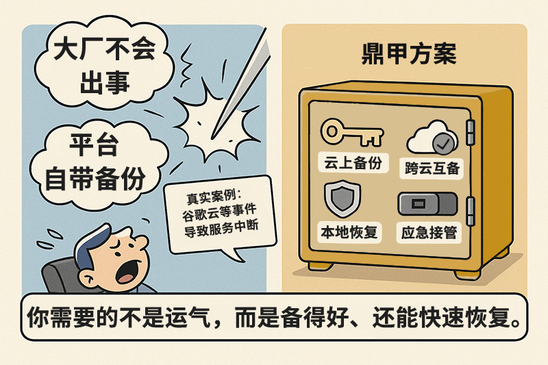 2024年,谷歌云因操作失誤誤刪 UniSuper 養(yǎng)老金基金賬戶,導致 62 萬用戶數(shù)天無法訪問退休賬戶,引發(fā)投訴和信任危機。部分數(shù)據(jù)因無備份永久丟失,造成業(yè)務(wù)中斷。若采用 3-2-1 備份策略,損失本可避免。