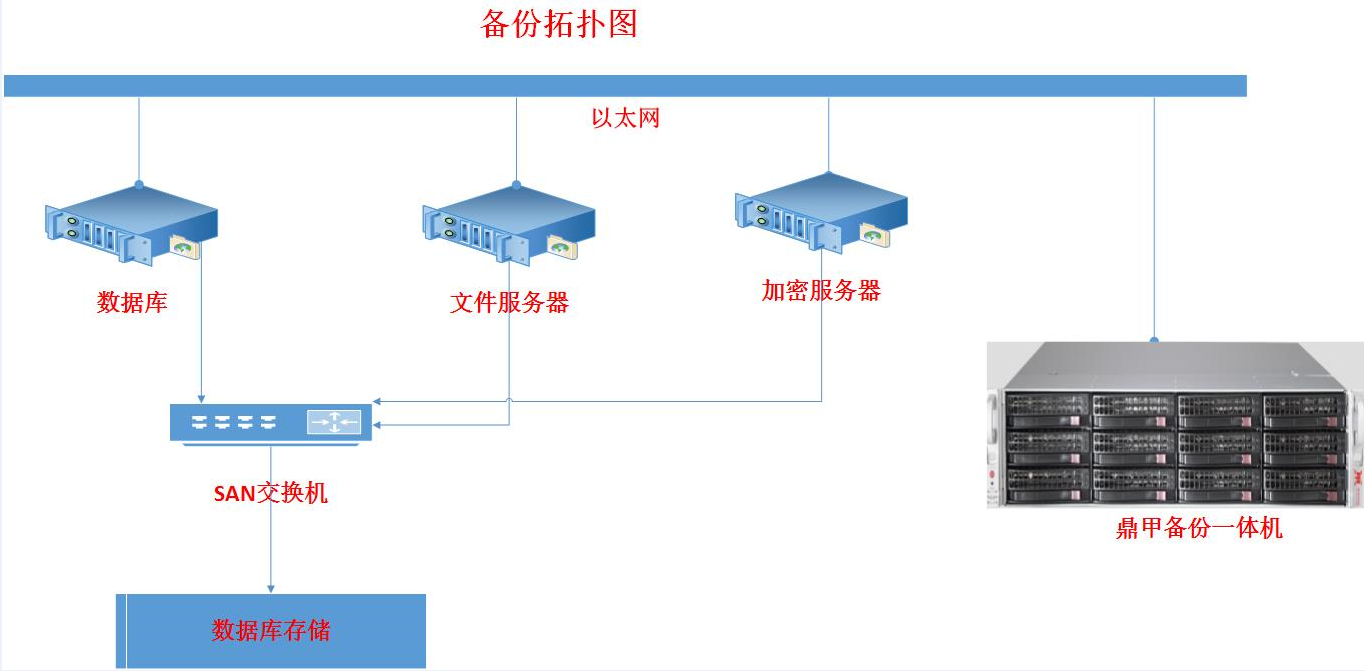 在數(shù)據(jù)庫服務(wù)器、文件服務(wù)器、加密服務(wù)器上安裝鼎甲迪備客戶端,即可實(shí)現(xiàn)在本地局域網(wǎng)內(nèi)將數(shù)據(jù)備份到鼎甲一體機(jī)。通過鼎甲運(yùn)維級(jí)分布式Web管理平臺(tái),對(duì)應(yīng)用服務(wù)器和數(shù)據(jù)保護(hù)服務(wù)器進(jìn)行統(tǒng)一的配置和管理。