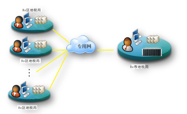 It will deploy InfoKists at local Tax Bureau to back up important data and deploy an InfoKist at the municipal bureau for remote backup. It also installs DBackup on servers and backs up SQLserver database, Windows OS and important files to disks. Once damage happens to above areas, InfoKist can quickly recover data with manual interference.